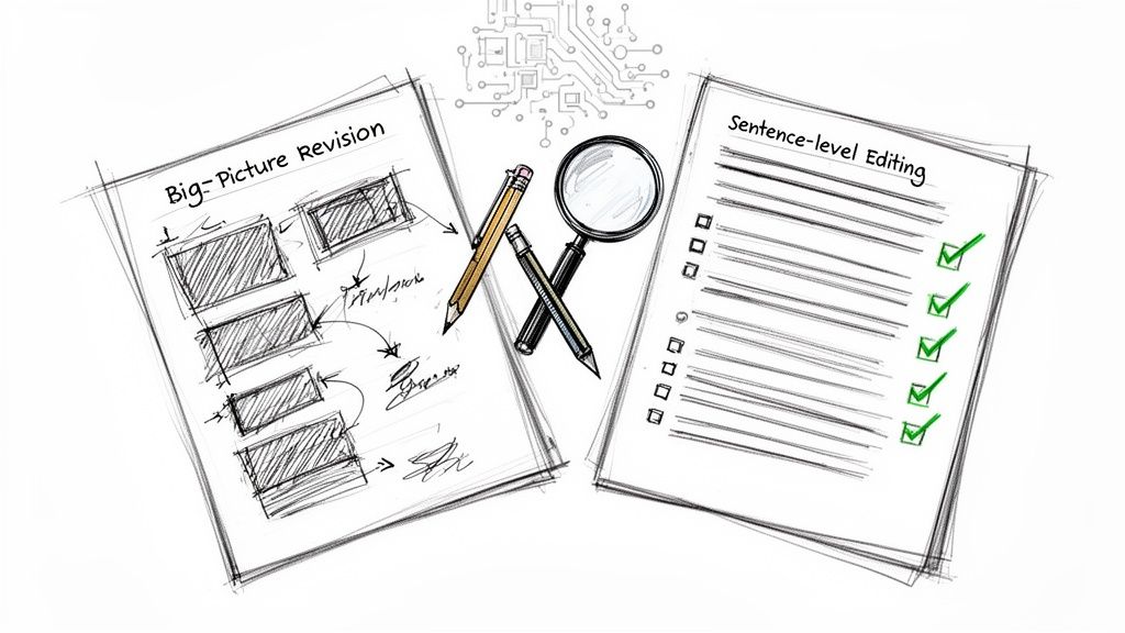 Transform your first draft into a masterpiece. This guide to editing and revising covers macro strategy, micro details, and how to use AI tools effectively.