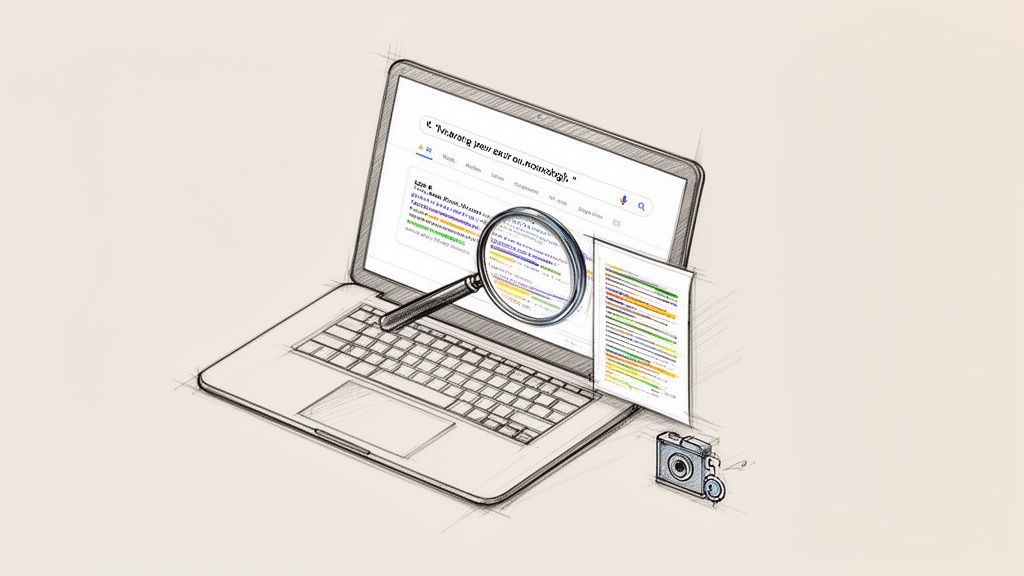 The most important operator you'll use is the quotation mark (" "). When you wrap a sentence in quotes, you're telling Google to find that exact string of words, in that exact order. This is your go-to method for spotting blatant, copy-paste plagiarism.