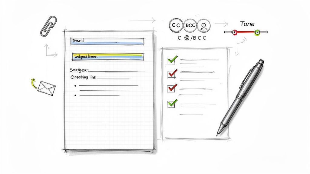 This guide will break down the essential principles of effective email communication into actionable advice. Here's a quick look at the core pillars we'll be covering.